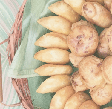 El pandebono, el pan horneado de queso y almidón de yuca, o la almojábana, pan de maíz tierno y queso, o el pan de yuca, un bocado crujiente y esponjoso a base de almidón de yuca y queso.